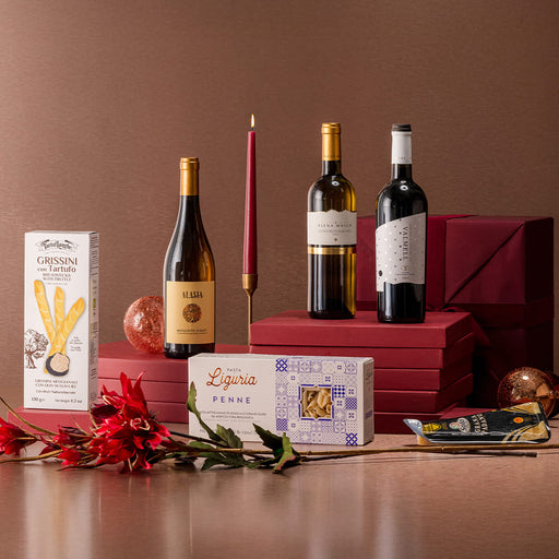 -€52.00€52.00 - €52.00Current price €52.00Original price €0.00 - Original price €0.00Original price €0.00- Tartuflanghe Grissini Tartufo 120g- Solo Italia, Grana Padano 200g- Elena Walch Gewurztraminer Selezione (Italy) 75cl- Pasta di Liguria Penne 500...